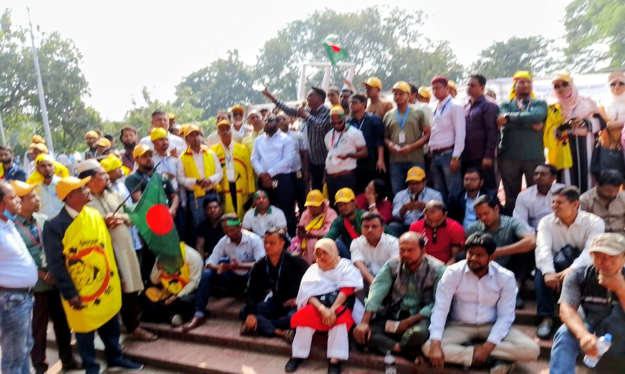 তারা হুশিয়ার দিয়ে আও বলেন, আমাদের দেয়ালে পিঠ ঠেকে গেছে, তাই আমাদের গৌরবের প্রতিক এ মনিপতাকা গায়ে জরি আজ শহিদ মিনারে ন্যায্য অধিকার নিয়ে অবস্থান কর্মবিরতিতে এসেছি। এটার কিন্তু আমাদের দাবি না কর্মকর্তাদের দীর্ঘ দিনের আশ্রাস ও প্রতিশ্রুতি। আমাদের যৌক্তিক ৬ দফা দাবি জিও (প্রজ্ঞাপন) আকারে প্রকাশ না হওয়ার পর্যন্ত আমরা এখানে অবস্থান করব। প্রয়োজনে আরো কঠোর কর্মসুচিতে যেতে বাধ্য হবেন। এমকি এখানে আত্মহতি দিবেন এবং সকলে মনিপাতা দিয়ে দাফন হবেন।