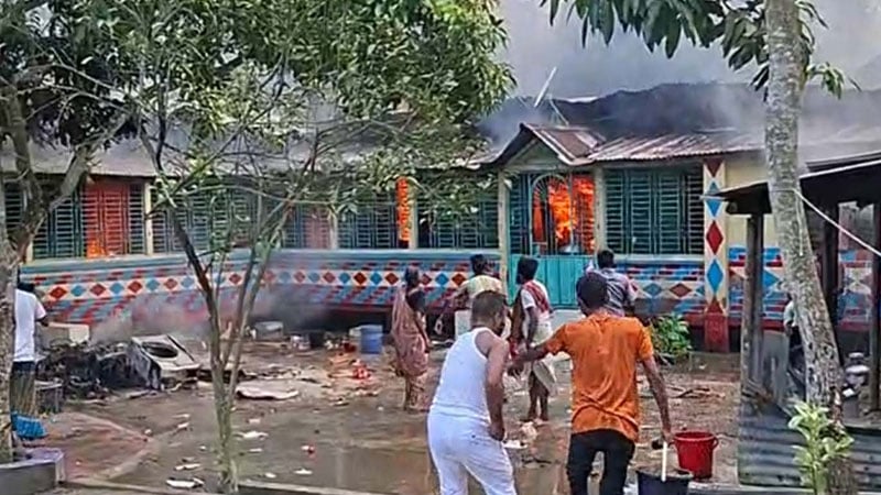 এমদাদের স্ত্রী আয়েশা আক্তার বলেন, ‘বাড়িতে কেউ ছিল না। হঠাৎ করে শত শত লোক বাড়িতে এসে লুটপাট করে। যে জিনিসপত্রগুলো নিতে পারে নাই সেসব জিনিসপত্র আগুন দিয়ে পুড়িয়ে ফেলে।’
