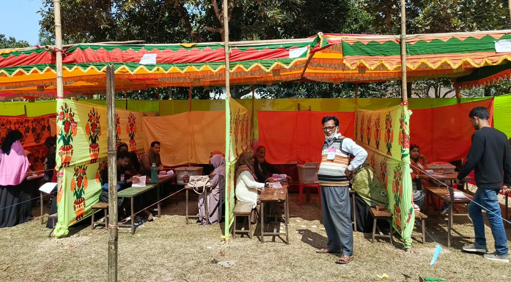 গাজীপুর-৩ আসন  খোলা মাঠে তাবু টানিয়ে  চলছে ভোট গ্রহণ