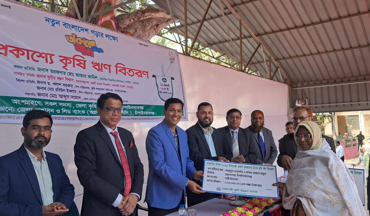 তারুণ্যের উৎসব ২০২৫ ইং উপলক্ষে নতুন বাংলাদেশ গড়ার লক্ষ্যে ‘এসো দেশ বদলাই, পৃথিবী বদলাই’ এই শ্লোগানকে সামনে রেখে চাঁপাইনবাবগঞ্জ জেলায় ৩৫টি বানিজ্যিক ব্যাংক প্রকাশ্যে কৃষি ঋণ বিতরণ করেছে।