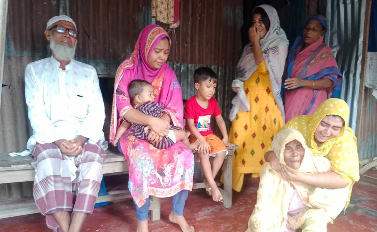 ভিতরে ঢুকতেই এক হৃদয বিদারক দৃশ্যের অবতরণ হয়। দেখা যায়, ছেলে হারা পাগল প্রায় মায়ের আর্তনাদ, দৃষ্টি প্রতিবন্ধি পিতার হাপিত্তাস, বিধাবা স্ত্রী হোসনা বেগমের অন্ত:দহন, মাদরাসা পড়ুয়া ছোট বোন আরজিনার বুক ফাটা কান্না, বিবাহিত বড় বোন পারভিন আক্তারের অঝোর ধারায় অশ্রু । সত্যিই এদের এই কান্না দেখে যে কারোরই চোখ বেয়ে জল গড়িয়ে পড়বেই।