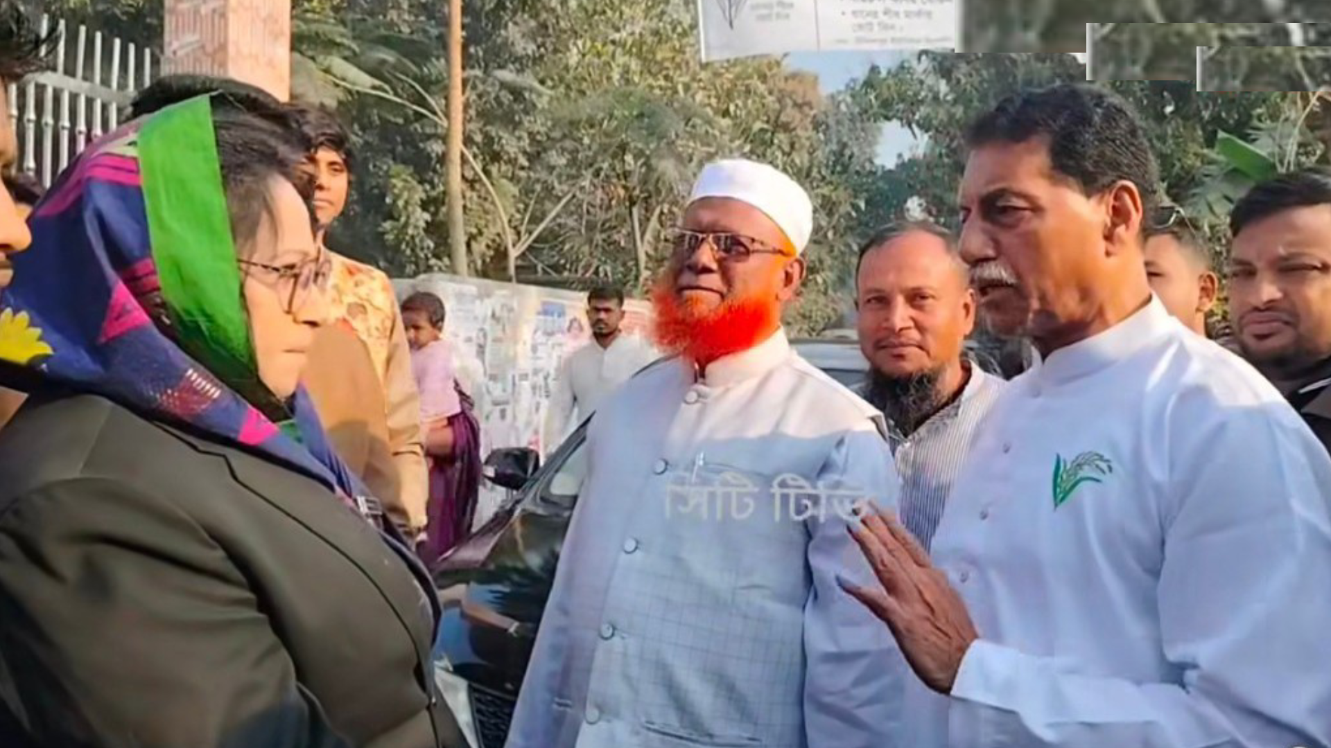 ওই কেন্দ্রে ভোট প্রদান করেন গণঅধিকার পরিষদের প্রার্থী শিরিন আক্তার (ট্রাক)। ভোট প্রদান শেষে তিনি মাঠে নেমে আসতে আসতে ততক্ষণে ওই কেন্দ্র পরিদর্শনে আসেন বিএনপি মনোনীত প্রার্থী খায়রুল কবির খোকন (ধানের শীষ), জামায়াতে ইসলামীর প্রার্থী মো. ইব্রাহিম ভূঁইয়া (দাঁড়িপাল্লা)। এসময় তাদের তিনজনকে মাঠে দাঁড়িয়ে পরস্পরের সঙ্গে কুশল বিনিময় ও আলাপে মেতে ওঠেন।