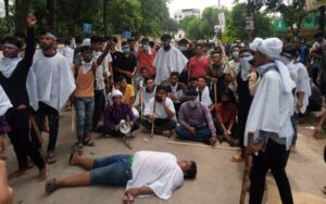 নরসিংদীতে বহিষ্কৃত ছাত্রদল নেতাদের সড়ক অবরোধ ; গাড়ি ভাঙচুর