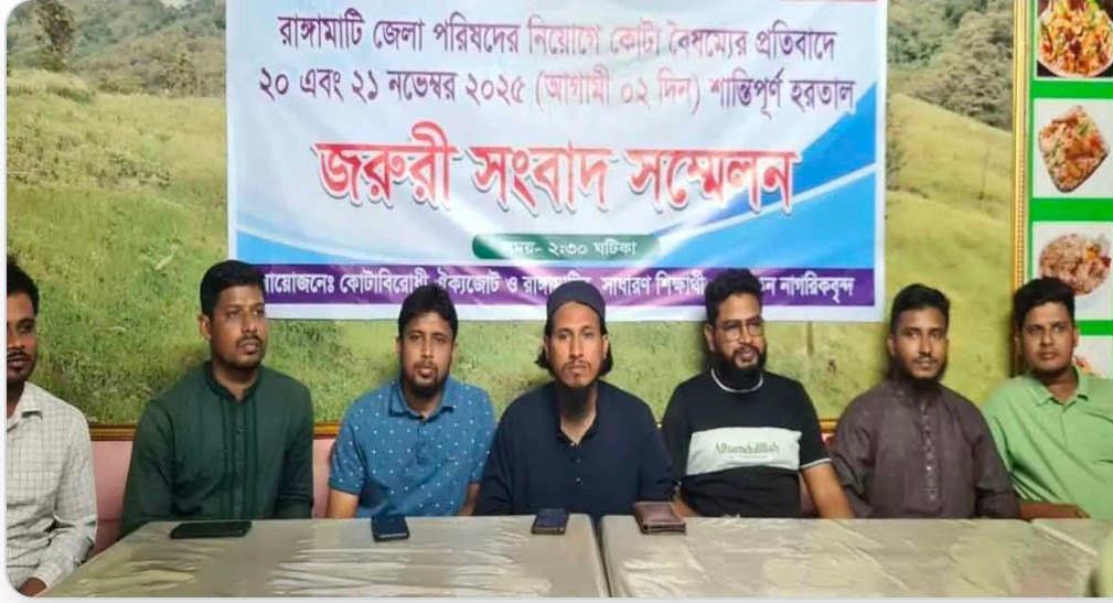 নেতারা অভিযোগ করেন, রাঙ্গামাটি পার্বত্য জেলা পরিষদের সাম্প্রতিক নিয়োগ বিজ্ঞপ্তিতে কোনো কোটার উল্লেখ নেই, এমনকি শূন্যপদের তথ্যও পরিষ্কারভাবে প্রকাশ করা হয়নি। সরকার নির্ধারিত ৭ শতাংশ কোটা অমান্য করে ৭০ শতাংশ পাহাড়ি ও ৩০ শতাংশ বাঙালি কোটার ভিত্তিতে নিয়োগ প্রক্রিয়া চালানোর উদ্যোগ নেওয়া হয়েছে—যা বৈষম্যমূলক ও মেধাবিরোধী বলে দাবি বক্তাদের।