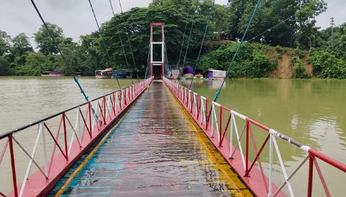 রাঙ্গামাটির সেই ঝুলন্ত সেতু পানির নিচে; পর্যটক চলাচলে নিষেধাজ্ঞা