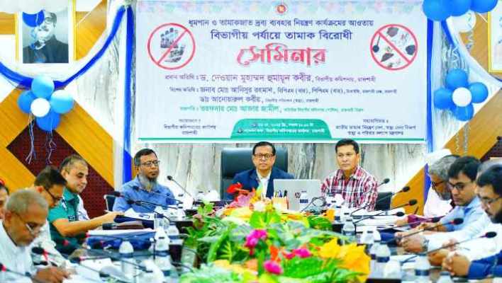 ধুমপান ও তামাকজাত দ্রব্য ব্যবহার (নিয়ন্ত্রণ) কার্যক্রমের আওতায় রাজশাহী বিভাগে তামাক বিরোধী সেমিনার অনুষ্ঠিত হয়েছে। রবিবার (২৬ মে) সকাল সাড়ে ১০টায় বিভাগীয় কমিশনারের কার্যালয়ের সম্মেলন কক্ষে এ সেমিনার অনুষ্ঠিত হয়।