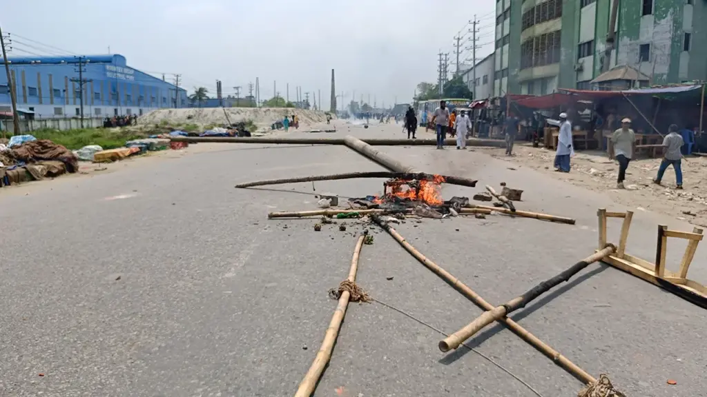 নারায়ণগঞ্জের রূপগঞ্জে ঢাকা-সিলেট মহাসড়কে আগুন দিয়ে অবরোধ করেছেন রবিনটেক্স নামের একটি কারখানার শ্রমিকরা। এসময় আইনশৃঙ্খলা বাহিনীর সঙ্গে শ্রমিকদের দফায় দফায় সংঘর্ষ, ধাওয়া পাল্টা ধাওয়া, লাঠিচার্জ ও ইটপাটকেল নিক্ষেপের ঘটনা ঘটে। এতে সেনাবাহিনীর লেফটেনেন্ট মুবীন ও ৩ সৈনিকসহ ৬০ জন আহত হয়েছেন।