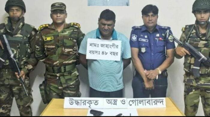 পটুয়াখালী প্রতিনিধি পটুয়াখালীর মির্জাগঞ্জ উপজেলা বিএনপির সাধারণ সম্পাদক জাহাঙ্গীর ফরাজীর হেফজতে ম্যাগজিন ও গুলিসহ একটি বিদেশি পিস্তল রাখার দায়ে গ্রেফতার করেছে। বৃহস্পতিবার (৭ নভেম্বর) ভোররাতে গোপন সংবাদের ভিত্তিতে উপজেলার সুবিদখালী