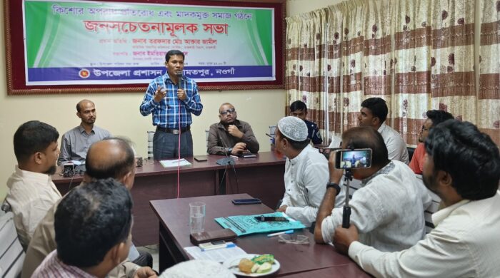 নিজস্ব প্রতিবেদক  নওগাঁর নিয়ামতপুর উপজেলায় কিশোর অপরাধ প্রতিরোধ ও মাদকমুক্ত সমাজ গঠনে জনসচেতনতামূলক সভা অনুষ্ঠিত হয়েছে। মঙ্গলবার (৫ নভেম্বর) বেলা ১২ টায় উপজেলা পরিষদ মিলনায়তনে এ সভা অনুষ্ঠিত হয়। জনসচেতনতামূলক