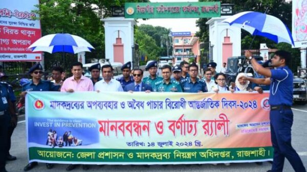 নিজস্ব প্রতিবেদক “মাদকের আগ্রাসন দৃশ্যমান প্রতিরোধই সমাধান” এই প্রতিপাদ্যকে সামনে রেখে রাজশাহীতে বিভিন্ন কর্মসূচির মধ্য দিয়ে  মাদকদ্রব্যের অপব্যবহার ও অবৈধ পাচার বিরোধী আন্তর্জাতিক দিবস পালন করা হয়েছে। রবিবার (১৪ জুলাই) read more