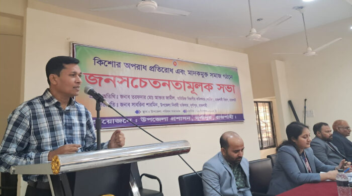 রাজশাহী প্রতিনিধি রাজশাহীর দূর্গাপুরে কিশোর অপরাধ প্রতিরোধ ও মাদকমুক্ত সমাজ গঠনে এক জনসচেতনতামূলক সভা অনুষ্ঠিত হয়েছে। বৃহস্পতিবার (১২ ডিসেম্বর) দুপুরে উপজেলা প্রশাসনের আয়োজনে পরিষদ সভাকক্ষে অনুষ্ঠিত এ সভায় অনুষ্ঠিত হয়।