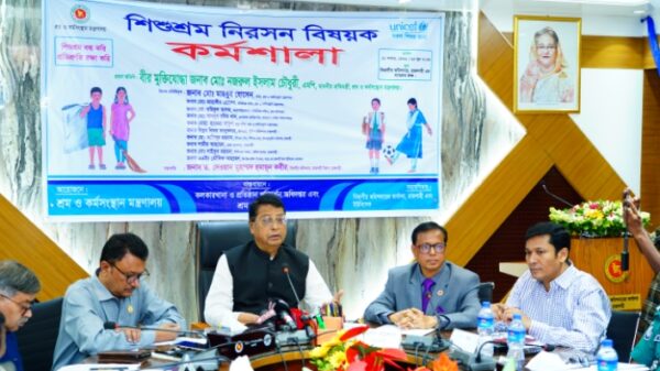 নিজস্ব প্রতিবেদক শ্রম ও কর্মসংস্থান প্রতিমন্ত্রী বীর মুক্তিযোদ্ধা মো. নজরুল ইসলাম চৌধুরী বলেছেন, ‘উন্নত-সমৃদ্ধ স্মার্ট বাংলাদেশ বিনির্মাণে লক্ষ্যে শিশুশ্রম নিরসনের কোনও বিকল্প নেই। এক্ষেত্রে শিশুশ্রমের বিরুদ্ধে সামাজিক আন্দোলন গড়ে তুলতে